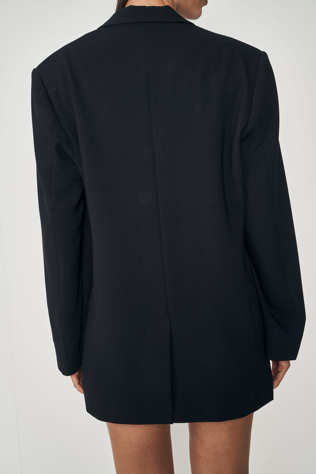 Detalhes: A modelagem alongada e o tecido de alfaiataria garantem elegância e modernidade à peça.