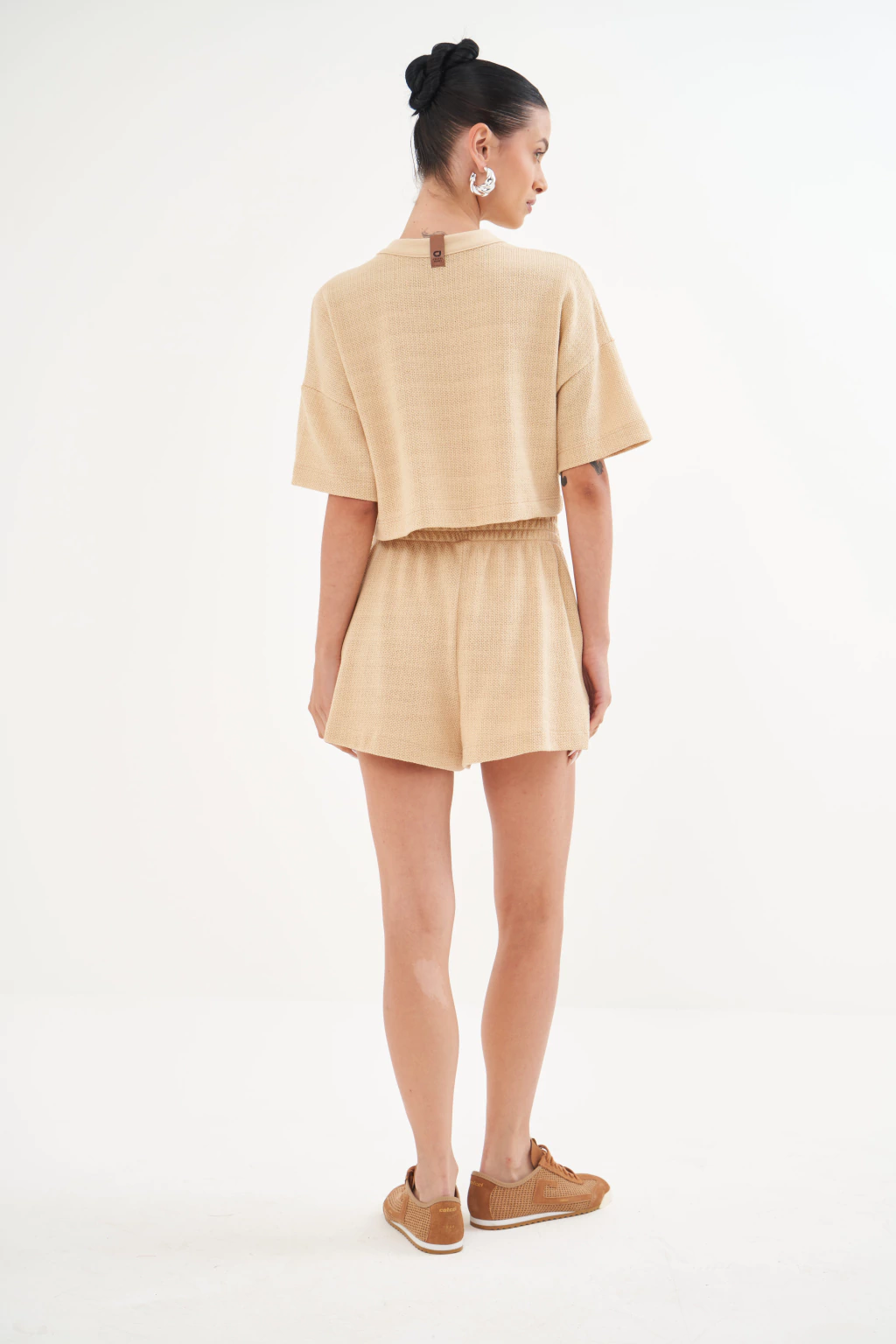 Design: Modelagem cropped e soltinha, com mangas curtas e gola redonda.