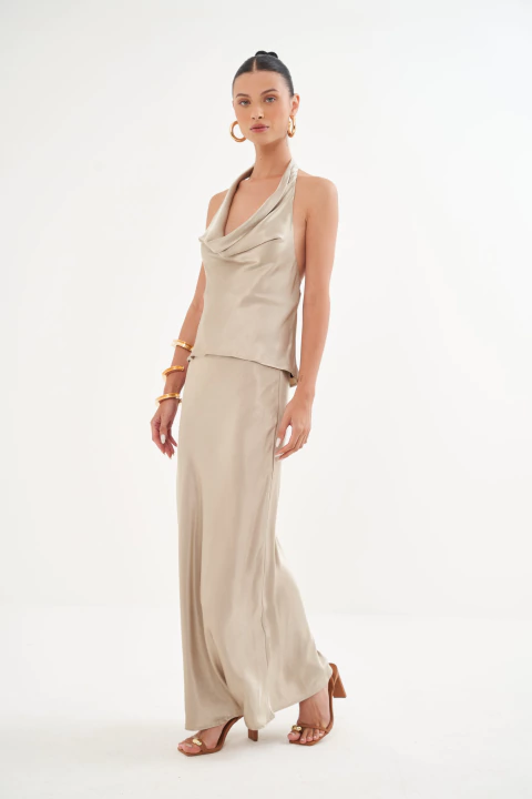 Peça/Look: Saia Longa Acetinada – RIVIERA